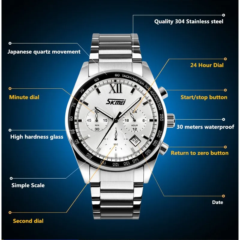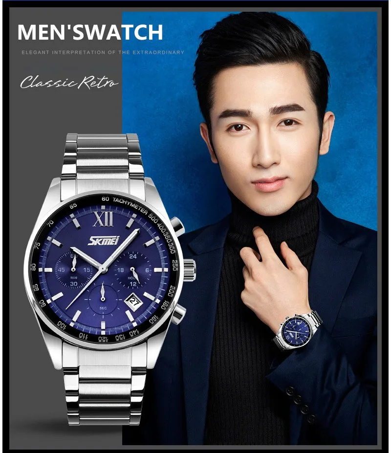 Часы SKMEI Мужские кварцевые с хронографом, роскошные Брендовые с 6 функциями, в стиле милитари, полностью стальные