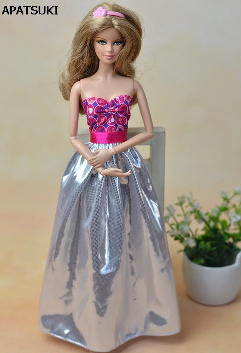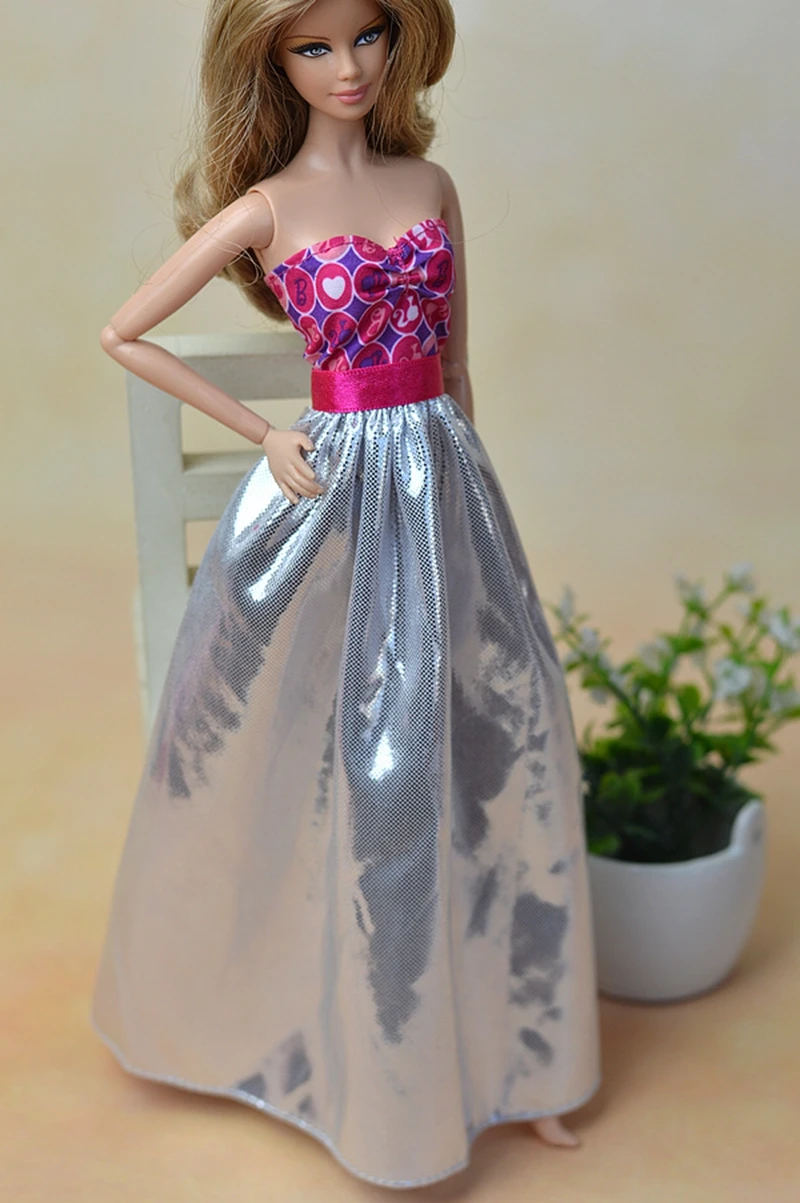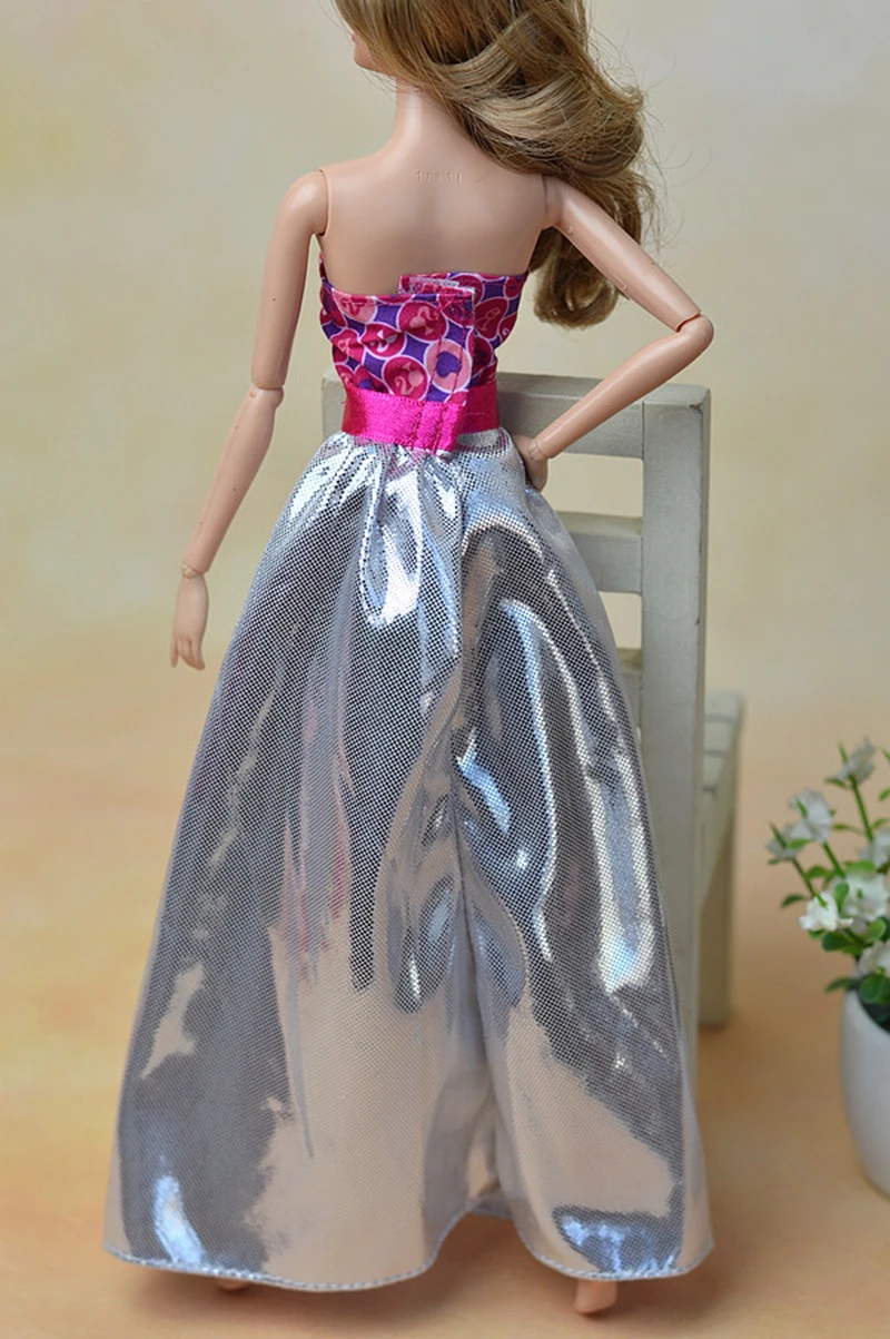 Высококачественное розовое Серебряное Сексуальное платье с открытыми плечами для Барби, женское платье для кукол 16 BJD