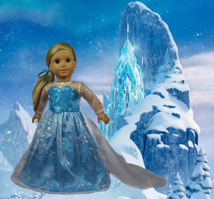 Кукольная одежда для 18-дюймовых кукол, синее американское платье принцессы, подходит для кукол девочек, одежда и аксессуары, Подарочные игрушки для девочек