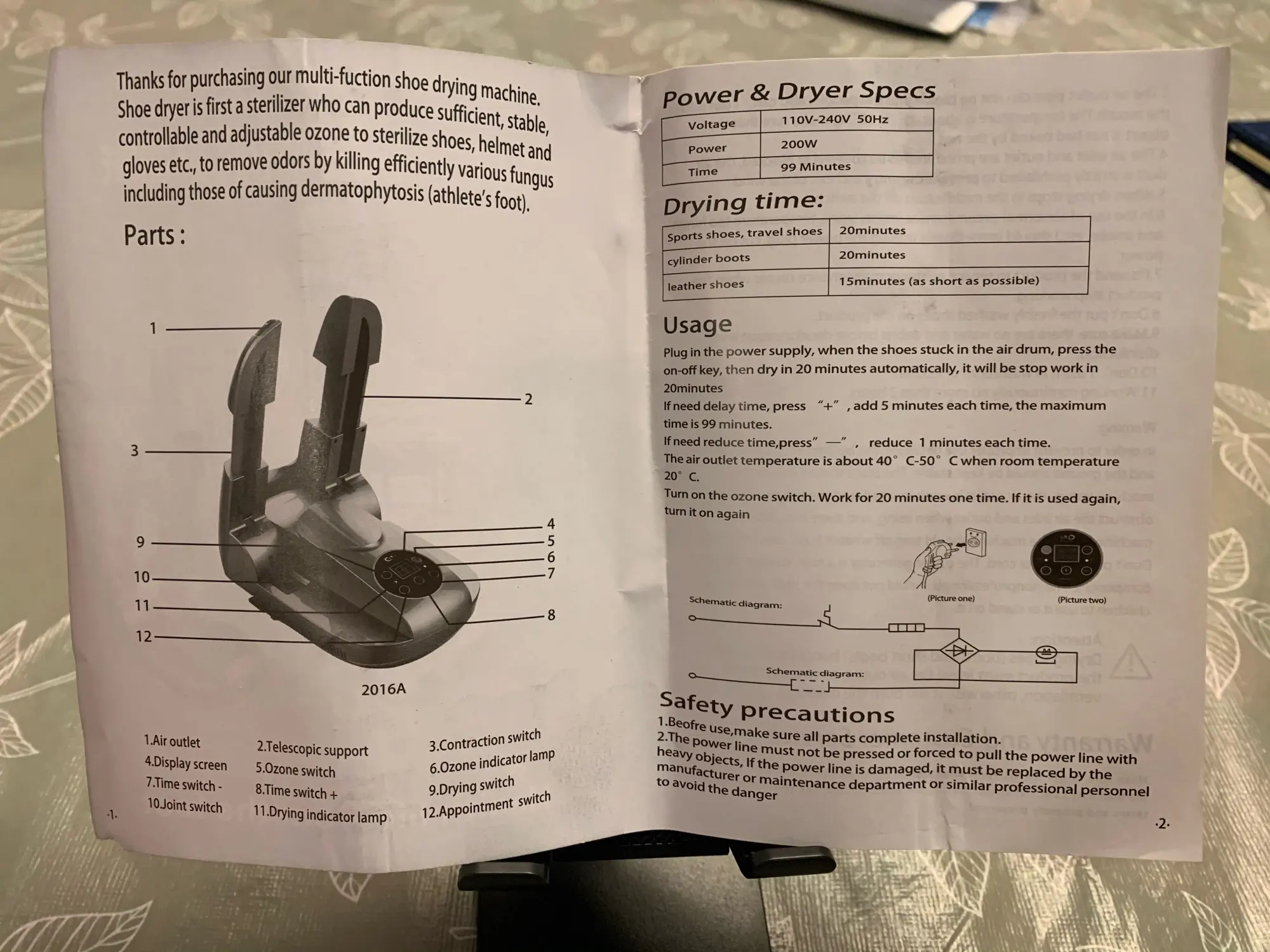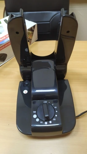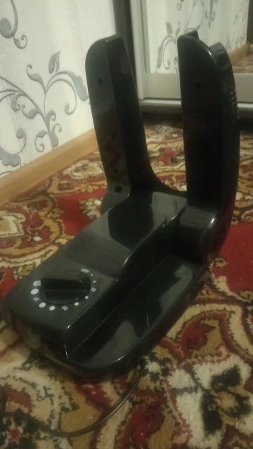 Очень классная сушилка для обуви! Компактная для такого функционала. Таймер сушки на 20 минут, деликатно дует тёплым воздухом. Есть обработка обуви озоном. Просто супер вещь! Сначала показалось, что хлипкая, т.к пластик дешевый, но после эксплуатации все сомнения развеялись. Со своими функциями экспресс сушки справляется отлично. Советую к покупке. В Московскую область доставили за 8 дней, продавец отправил в день оплаты. Упакована достаточно надежно.