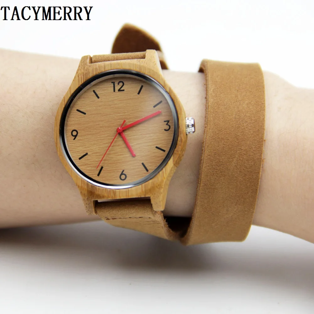 Женские бамбуковые часы ручной работы из 100% натурального материала, модные подарки с японским механизмом, кварцевые наручные часы с ремешком из натуральной кожи