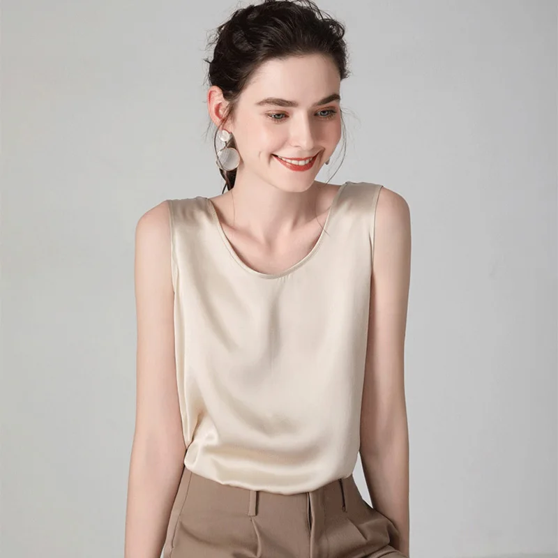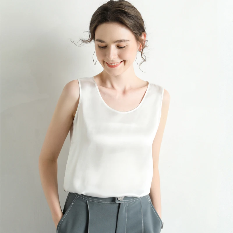 Майка женская из 100% натурального шелка, атласная, без рукавов, 2020, летние жилеты