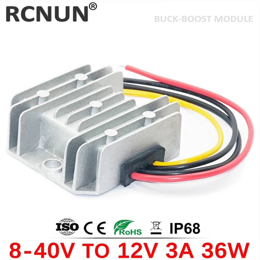 Повышающий понижающий модуль RCNUN, 8-40 В до 12 В, 1 А, 3 А, 6 А, понижающийповышающий стабилизатор напряжения, регулятор 36 Вт DC-DC, преобразователь для автомобиля на солнечной батарее