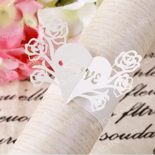 50 шт лазерная резка сердца с цветами бумажные кольца для салфеток для свадебной вечеринки одноразовые кольца для салфеток Посуда украшения