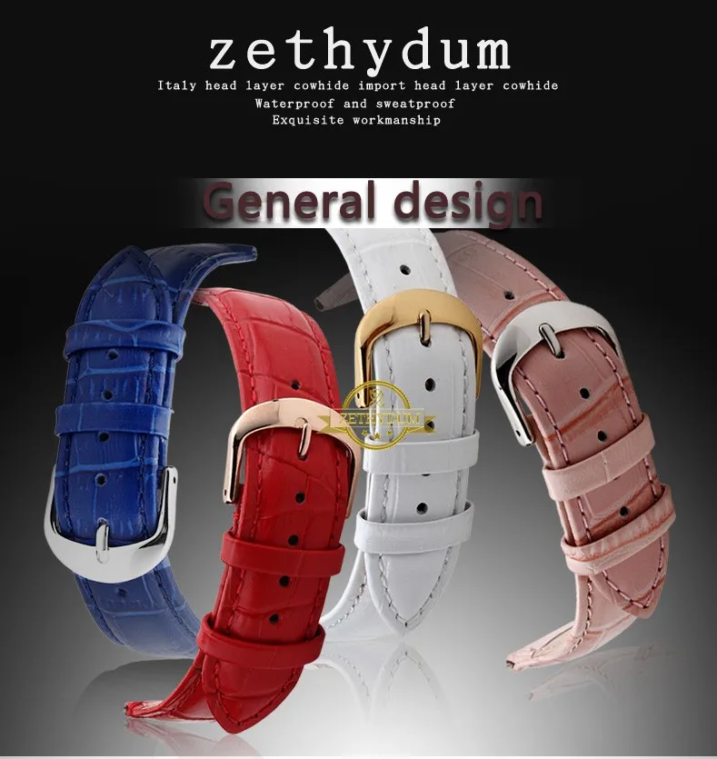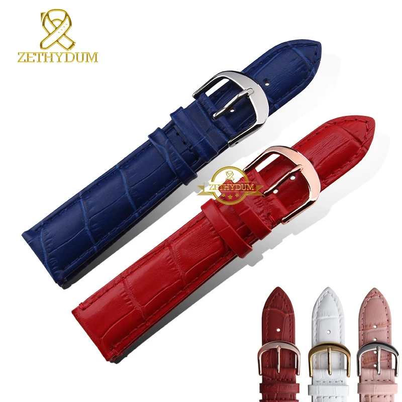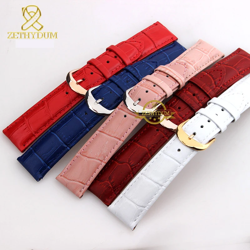 Ремешок из натуральной кожи для женщин, модный браслет для наручных часов, разные цвета, 12 14 16 18 20 мм, розовый синий красный цвет