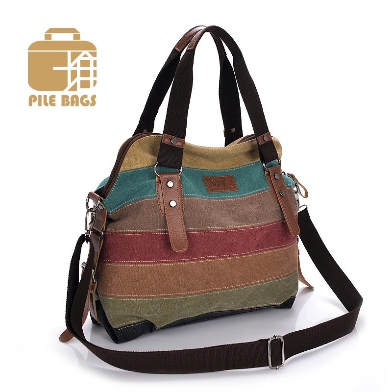 Лоскутная холщовая Сумочка для женщин, женские сумки-тоуты на ремне, мессенджеры, полосатые женские винтажные повседневные сумочки