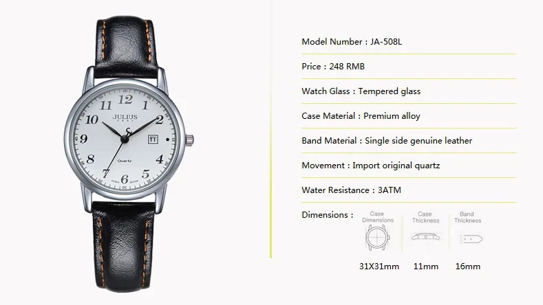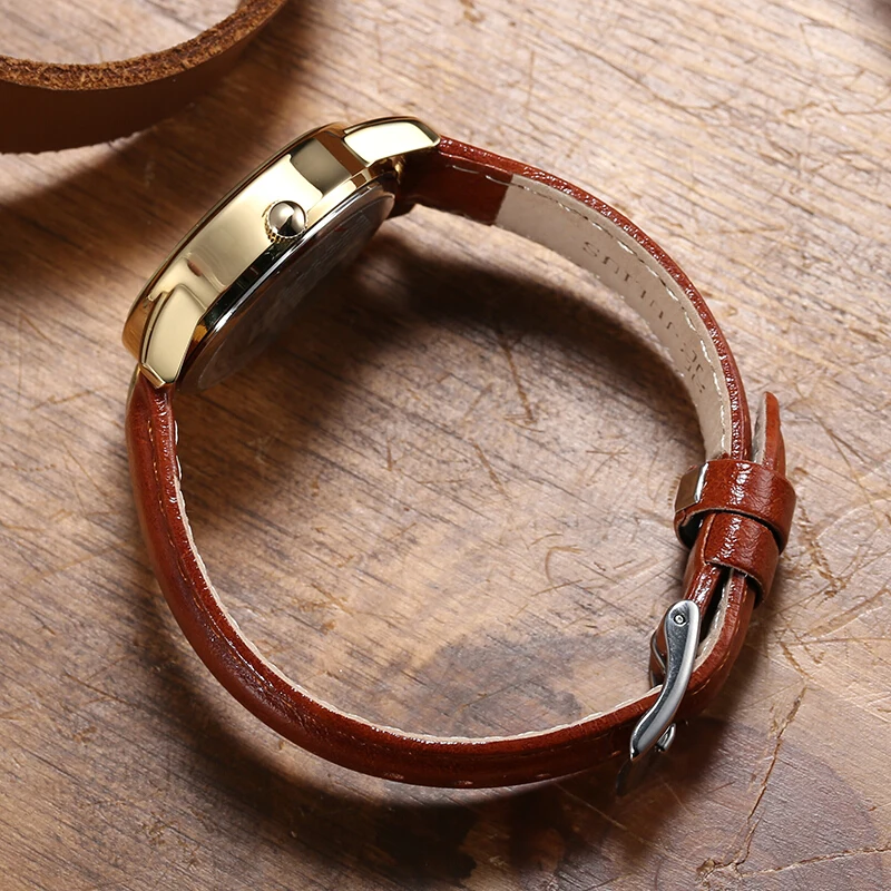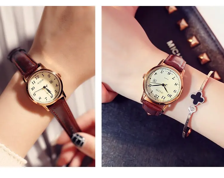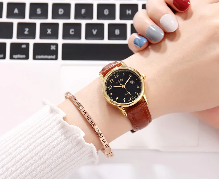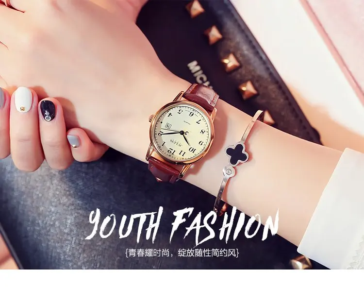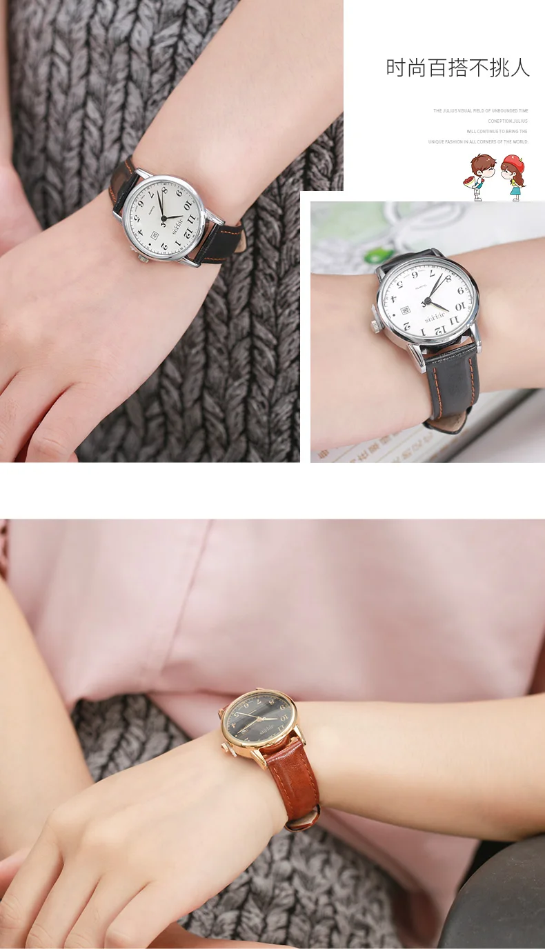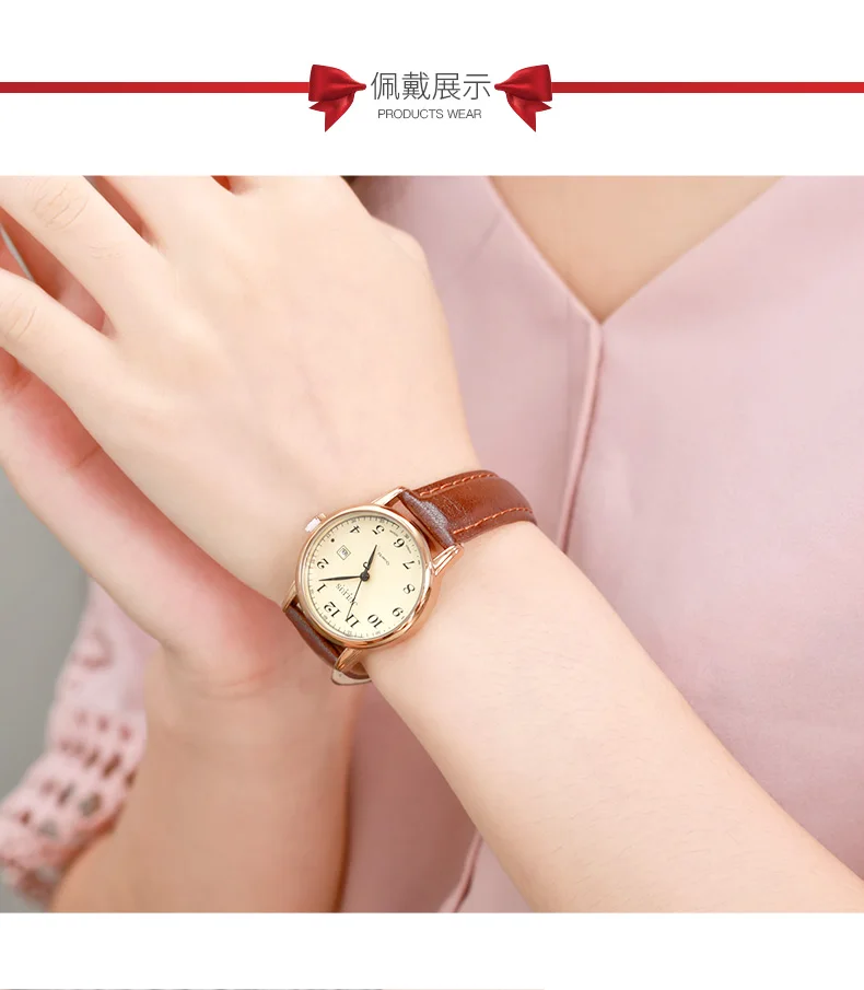 Часы женские из натуральной кожи, с автоматическим отображением даты
