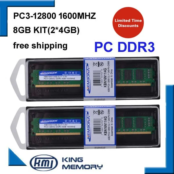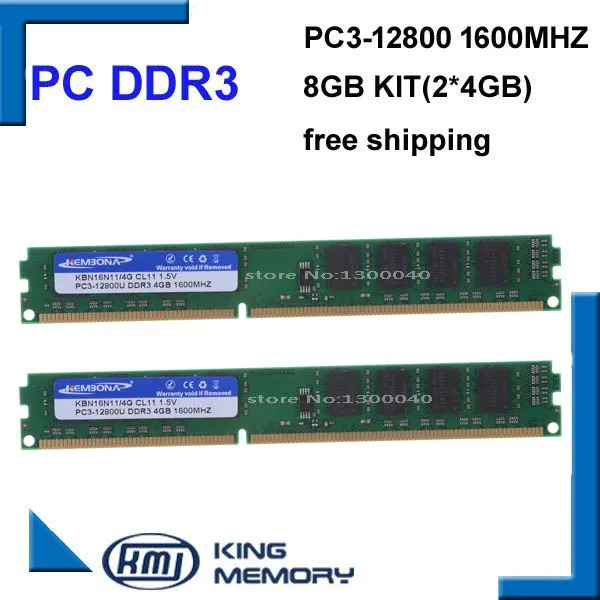 KEMBONA Бесплатная доставка DDR3 8 Гб 1600 МГц (комплект из 2,2X 4 Гб DDR3 для двухканального) PC3-12800 Полная совместимость со всеми материнскими платами