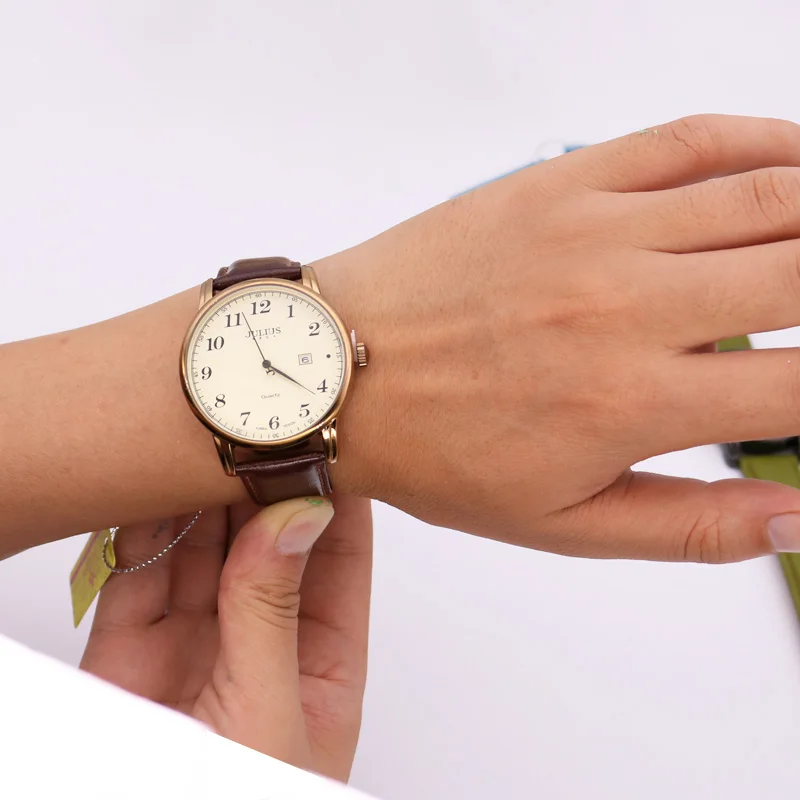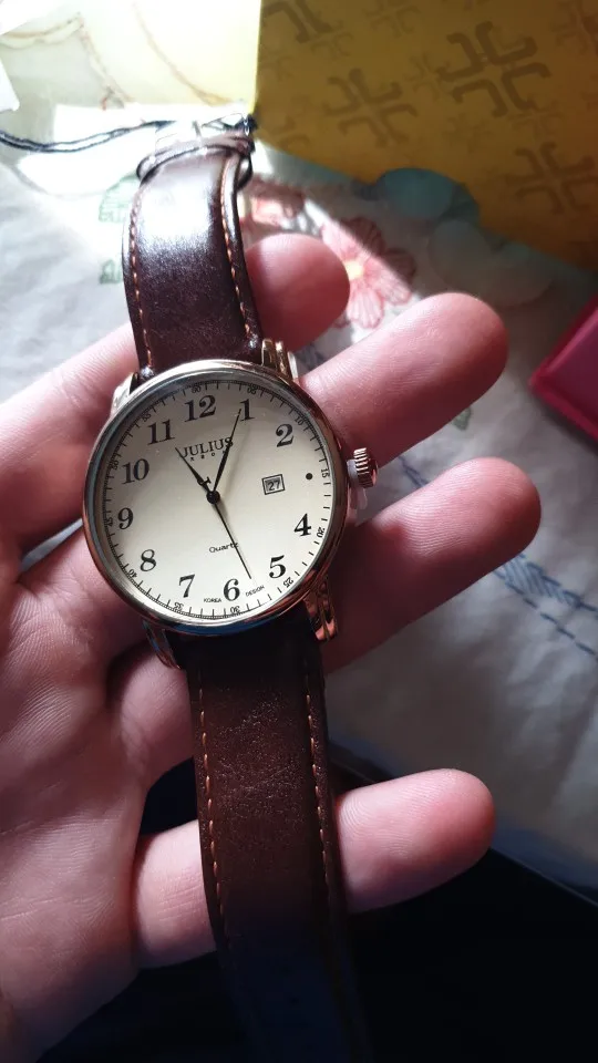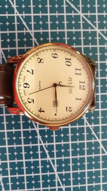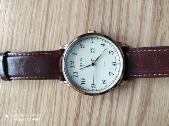 Часы очень красивые, хорошо обработанные и легко увидеть цифры. Винтажный вид очень хорошо выполнен. Для того, чтобы надеть на него, я бы сказал, что он пропал 3, и я не знаю, в каком направлении