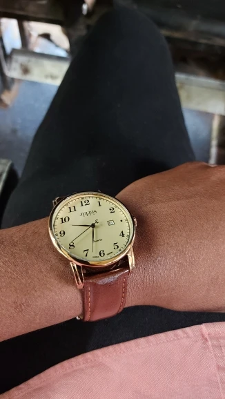 Большие Красивые золотые часы, хорошее качество, четкий дисплей часов и в целом действительно приятно носить его. В своей простоте кроется Красота этих стильных часов. Хорошие детали. Доступно в короткие сроки, совершенно нетронуто и хорошо защищено. За свою цену супер. Совет покупать с уверенностью у этого дружелюбного и надежного продавца.