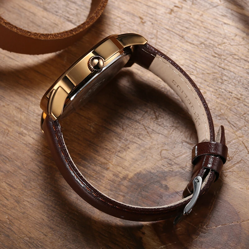 Часы мужские кварцевые, из натуральной кожи, 4 цвета