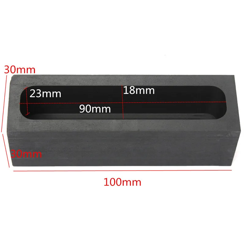 Литой слиток для графитового слитка, 100х30х30 мм, 23 унции650 г, для золота, серебра, меди, растапливания лома, размер слота 90x18x23 мм