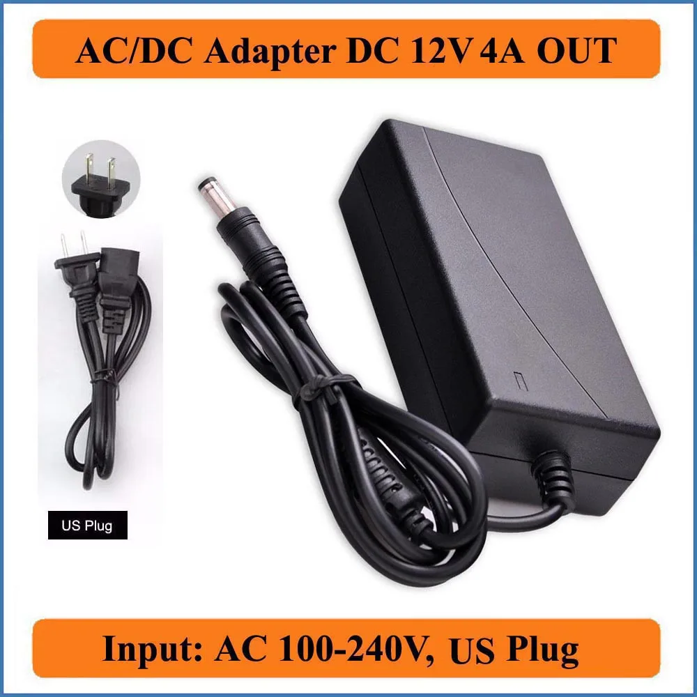 Адаптер переменного и постоянного тока с американской вилкой, 12 В, 4 а, адаптер для источника питания постоянного тока в 12 В постоянного тока, зарядное устройство 5,5 мм x 2,5 мм для светодиодной лентымонитора с ЖК-дисплеем