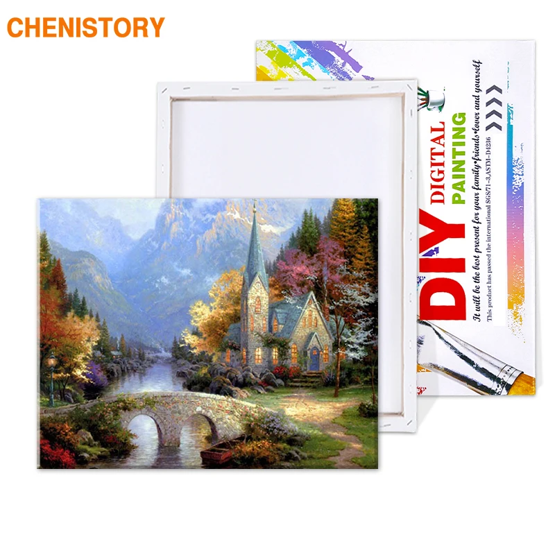 CHENISTORY не Рамка Сельский пейзаж DIY Краска по номерам Акриловая Краска на холсте Раскрашивание краски наборы для картина на стену для дома
