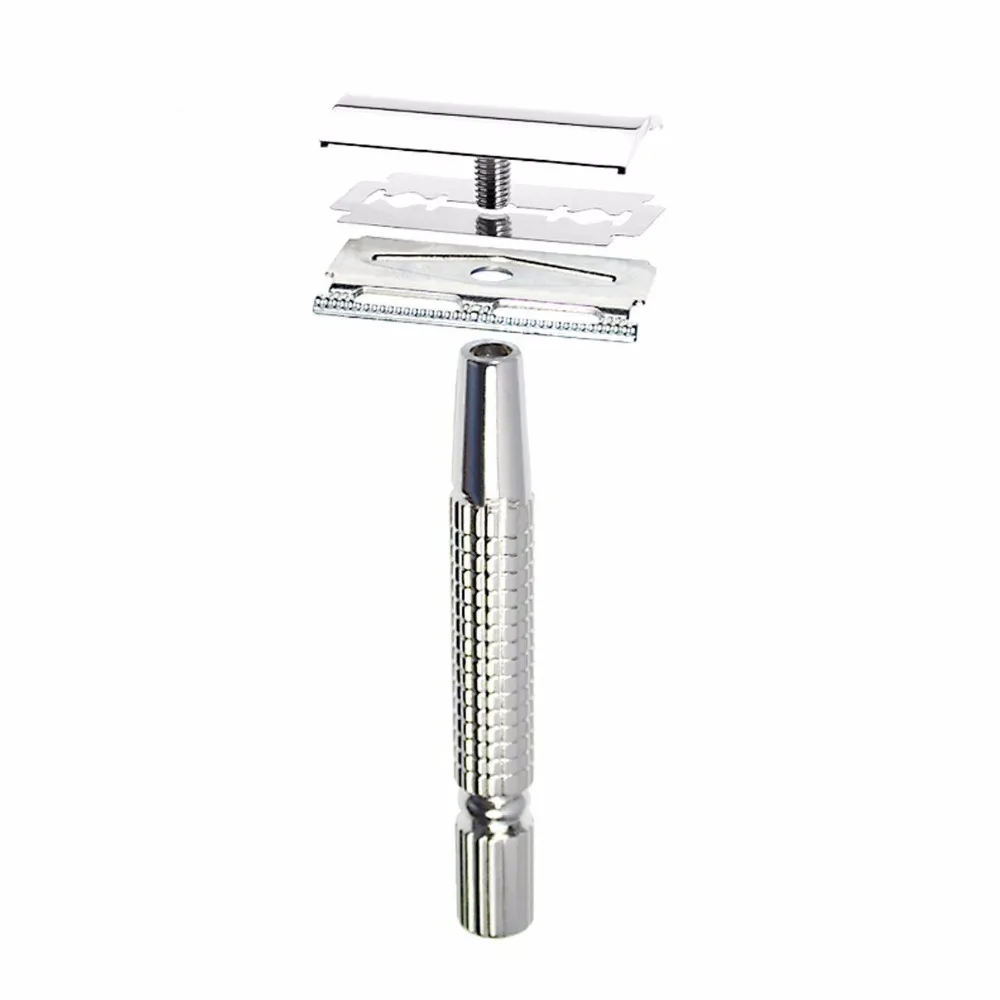 Мужская Ручная бритва, традиционная Мужская хромированная Безопасная бритва с двойным лезвием, Классическая бритва + лезвие