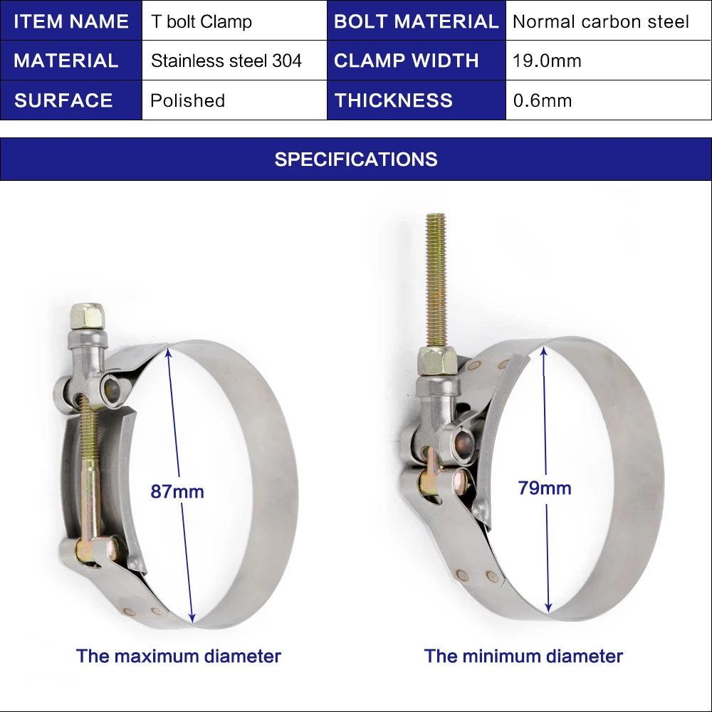 Температура Выдерживает номинальную температуру:-От 65F до 500F Номинальное давление:120-275 фунтов на квадратный дюйм Применение:Универсальный продукт! Идеально подходит для DIY турбо, интеркулер, впускное, турбо зарядное устройство проектов! В комплект входит:2 шт Т болт зажим