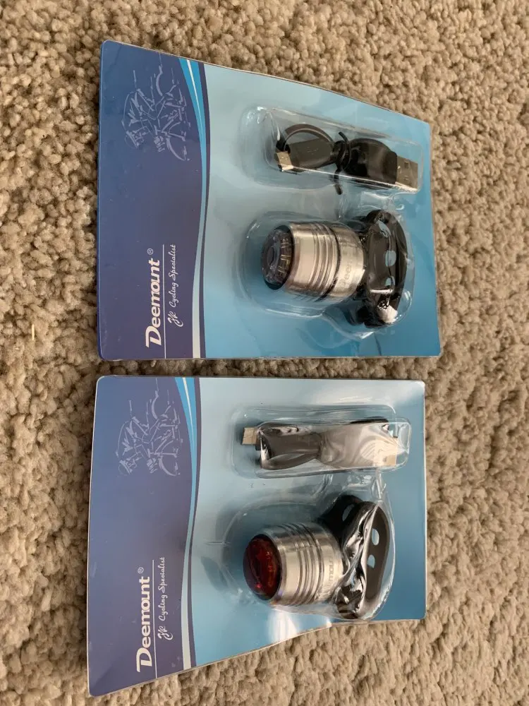 Заказал передний и задний фонари. Быстро доставили за две недели. Качество приятно удивило, очень похожи на Lyzine. 4 режима работы, достаточно яркий передний фонарь при дневном свете, само то, что бы обозначить себя на дороге. В комплекте к каждому фонарю кабель микро USB. За эти деньги, товар