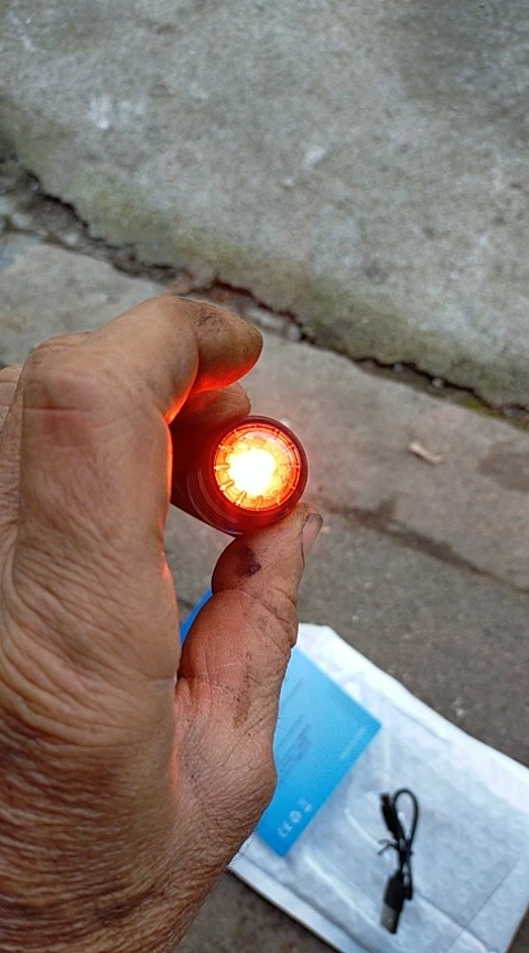 В качестве маяка хороший вариант, имеет четыре режима: непрерывный яркий, непрерывный неяркий, постоянно мигающий, мигающий с перерывом. Включается и выключается длительным нажатием, режимы переключаются коротким нажатием. Полностью заряженный включил на непрерывный яркий режим, через четыре часа начал постепенно тускнеть, ещё через час стал заметно тусклым. Заряжается довольно быстро, во время зарядки светится красным, по завершении - прекращает светиться. Вообщем, заказом доволен