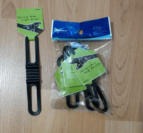 Резинки не очень удобные, закрепленый ими фонарик даже на асфальте изрядно трясет, пятно света прыгает. Буду использовать для крепления другого навесного оборудования. Дошло до Московской области за две с половиной недели.