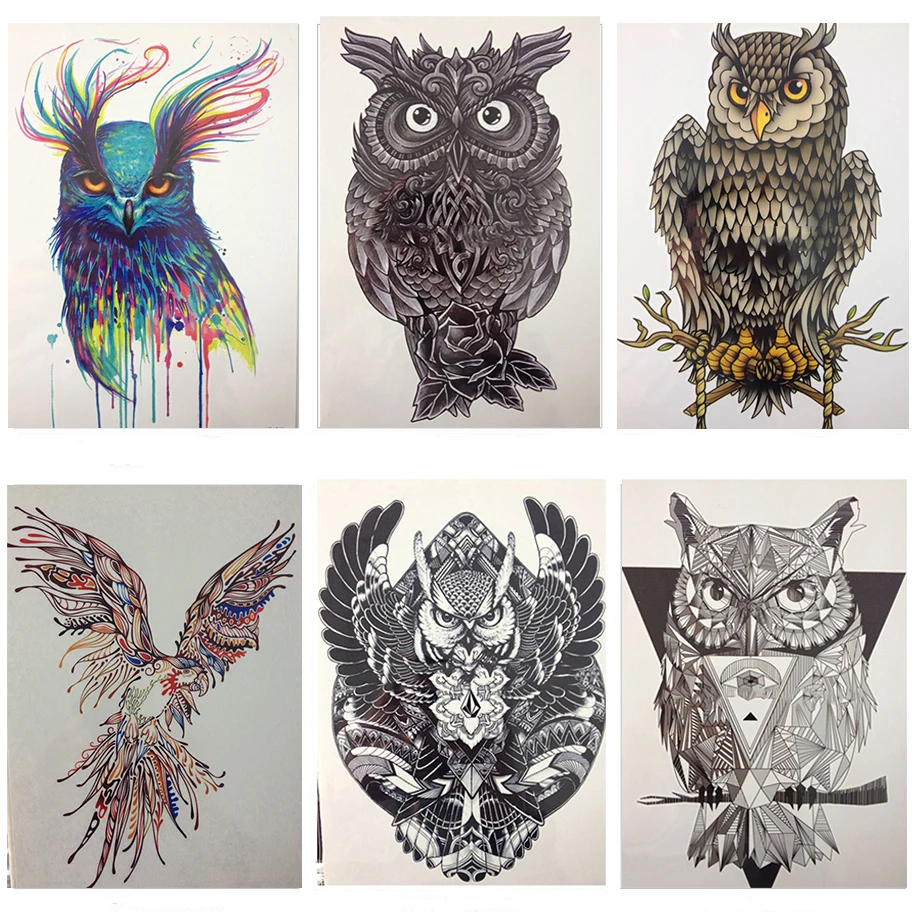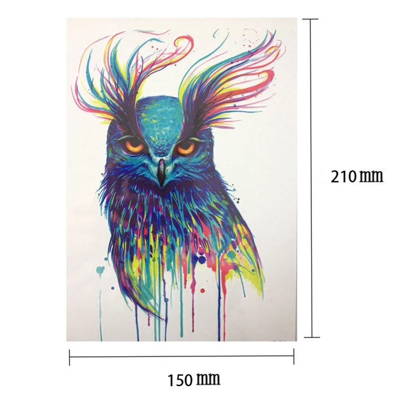 2016 Мода Красочные Красоты СОВА Водонепроницаемый Горячие Временные Татуировки Наклейки водонепроницаемый тату #141