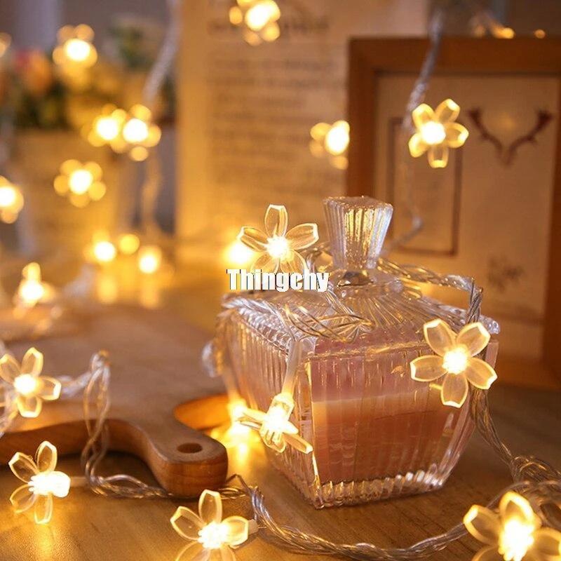 Светодиодная гирлянда с цветком вишни, питание от батарейки, освещение с хрустальными цветами, Свадебный Праздничный декоративный светильник льник
