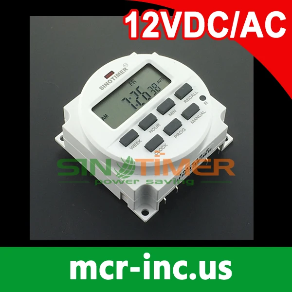 1224-часовой формат, большой ЖК-дисплей, 1,598 дюйма, 12 В постоянного тока, таймер Программируемый на 7 дней с внутренним реле UL