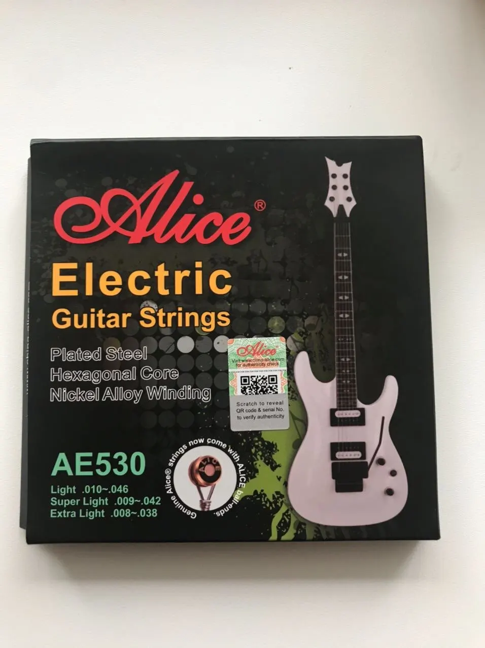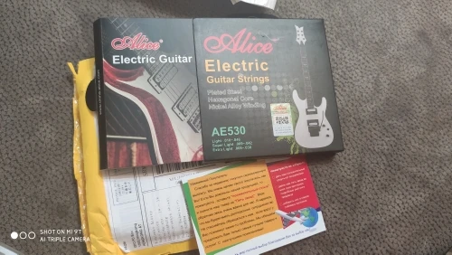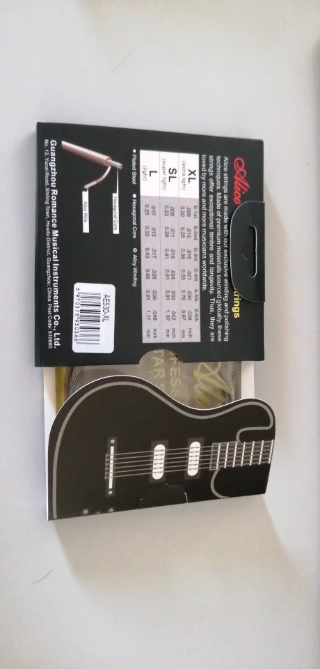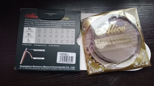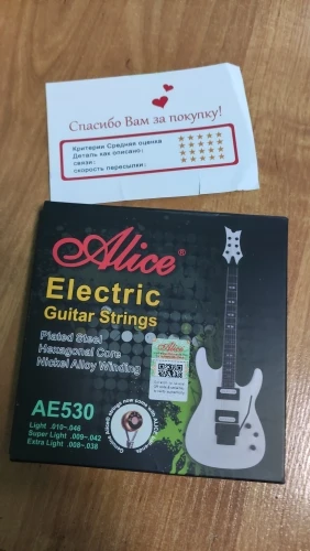 Доствка 12 дней. Беру ALICE AE530 XL не в первый раз. При использовании флойда, строй держат хорошо, сколько прослужат, под вопросом. Для сравнения, раньше взял ERNIE BALL 8-38. Ставил на ФЛОЙД. Полнейшее фуфло, на следующий день приходиться инструмент подстраивать.