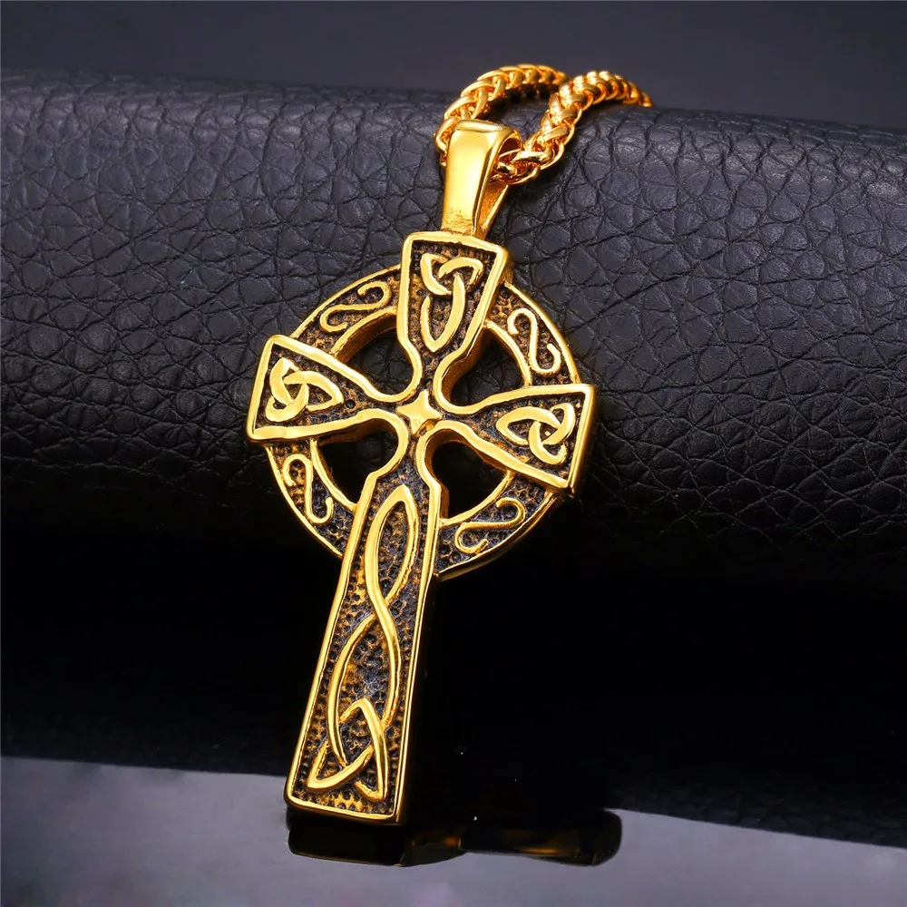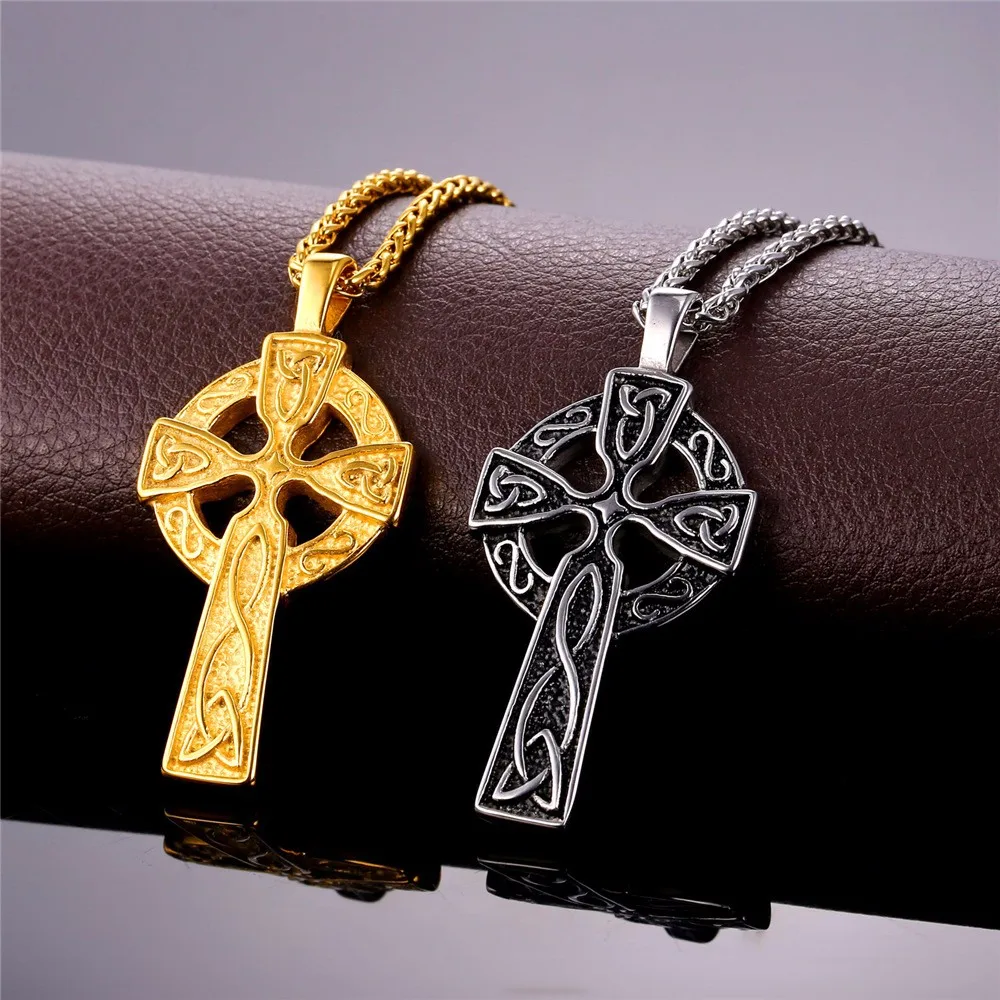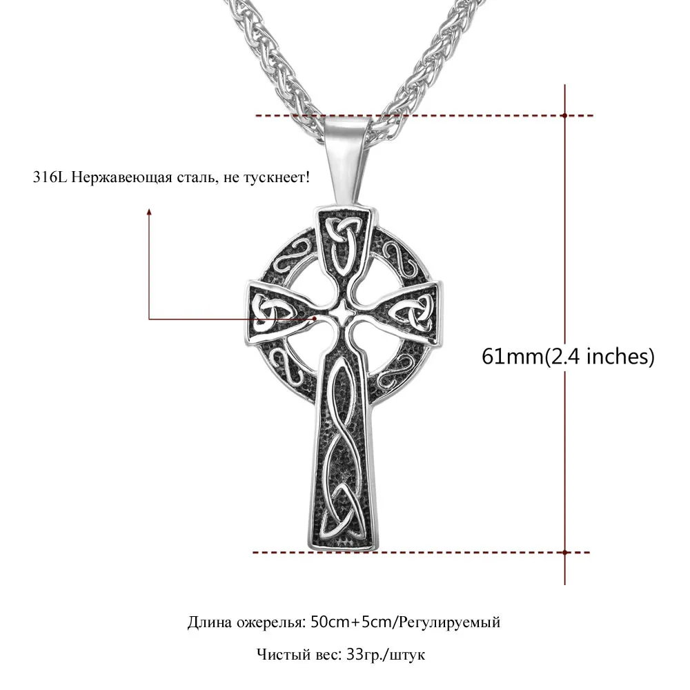 U7 Кельтской Христианской Ювелирные Изделия Из Нержавеющей Стали Triquetra Викинг Трехместный Рог Odin Кельтский Крест Мужской Ожерелья Подвески P754