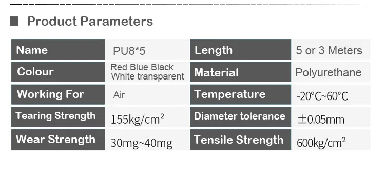 Быстросъемный шланг PU8 * 5 PU, воздушный шланг 5 м или 3 млот, пневматический шланг 8 мм, Трубка воздушного компрессора, синий, черный, красный трубчатый шланг для компрессора