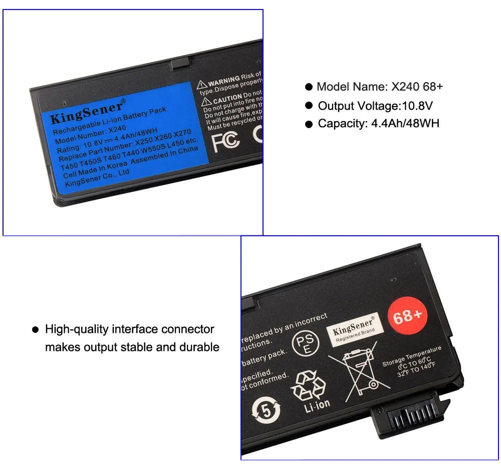 Аккумулятор KingSener для ноутбуков Lenovo Thinkpad X270, X260, X240, X240S, X250, T450, T470P, T450S, T440S, K2450, W550S, 45N1136, 45N1738, 68 +