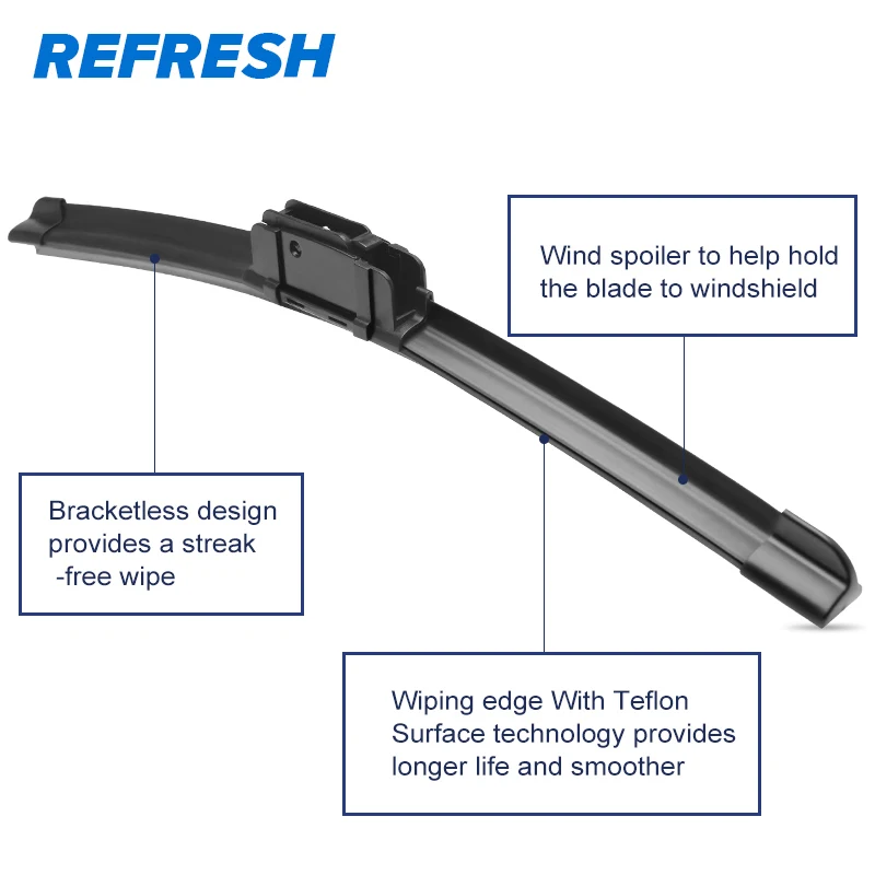 Отличная производительность на высоких скоростях . Оба луча REFRESH и гибридные стеклоочистители имеют аэродинамические конструкции со спойлером . Часть силы ветра опускается , чтобы удерживать лезвия на лобовом стекле и предотвращать подъем при движении на высоких скоростях