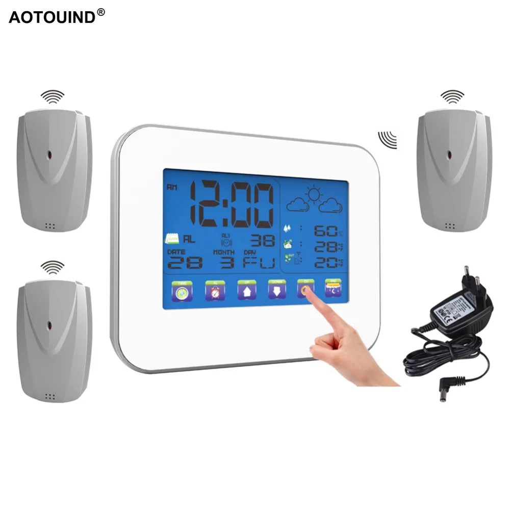 1. Беспроводная температура передается от погодного наружного датчика,В диапазоне 35 м, который принимает до 3 наружных передатчиков!