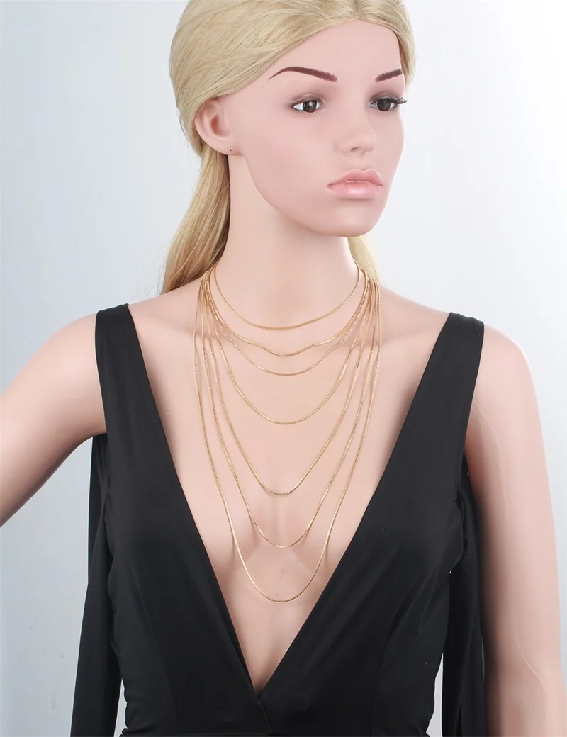 Цепочка для ожерелья 35-70 см, ширина 1 мм, тонкая цепочка в коробке желтого и золотого цвета, ювелирные изделия для женщин, мужчин, детей, мальчиков и девочек