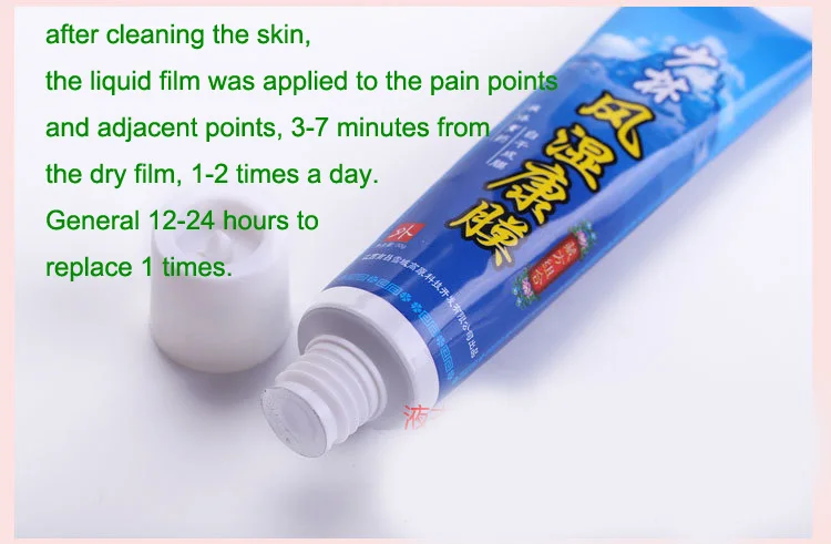 Подходит для толпы: Ревматизм и ревматоидный артрит, шейный спондилез, грыжа поясничного диска, штамм поясничных мышц, гиперостеогены (шпоры), ишиас, скапулоeral льный периартрит, кости и суставов в форме спины, подагры.Методы: После очистки кожи жидкая пленка наносится на болевые точки и прилегающие точки, 3-7 минут от сухой пленки, 1-2 раза в день. Общее 12-24 часа для замены 1 раз.Примечание: Этот продукт является внешним источником, небольшое количество аллергии на кожу, отключить оба. Не приятен для глаз, носа, рта, слизистой оболочки ушей, при контакте с глазами, пожалуйста, используйте краску в воде! Язва на кожу или инфекция инвалидов, беременным женщинам с осторожностьюХранение: Запечатанный в прохладном сухом местеМанометр: 25 г/кор.
