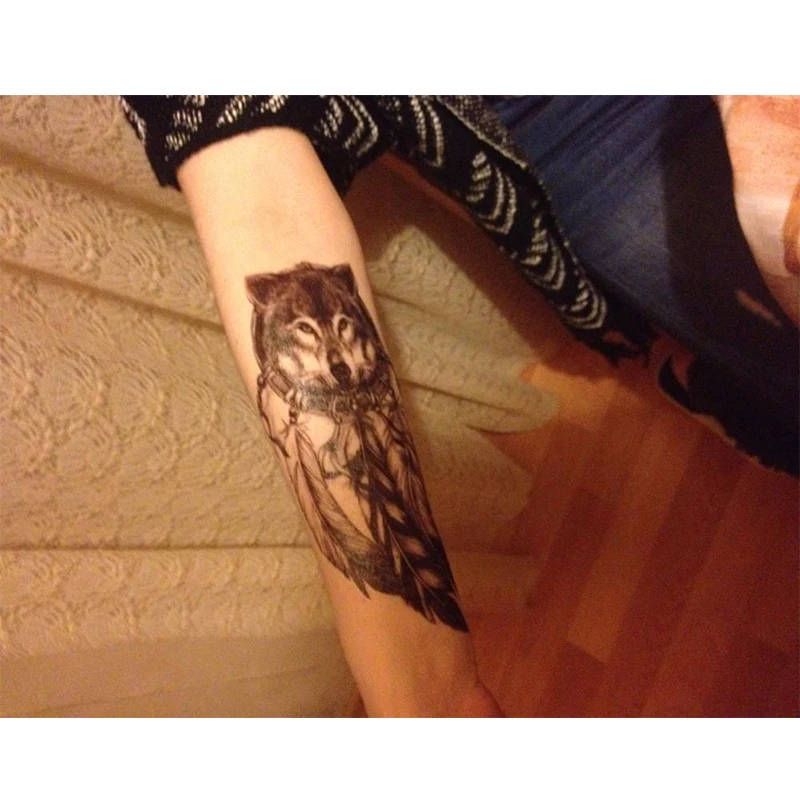 Волчонок с пером, 21x15 см, красивая Татуировка непромокаемая Временная тату-наклейки #174