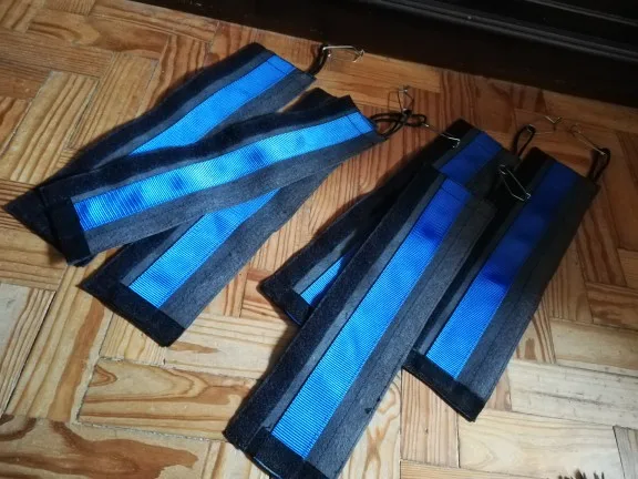Están geniales. Se abren por completo con sistema de velcro. Es muy resistente ya que son de polipiel. El sistema de pinzamiento para la cuerda es estupenda.