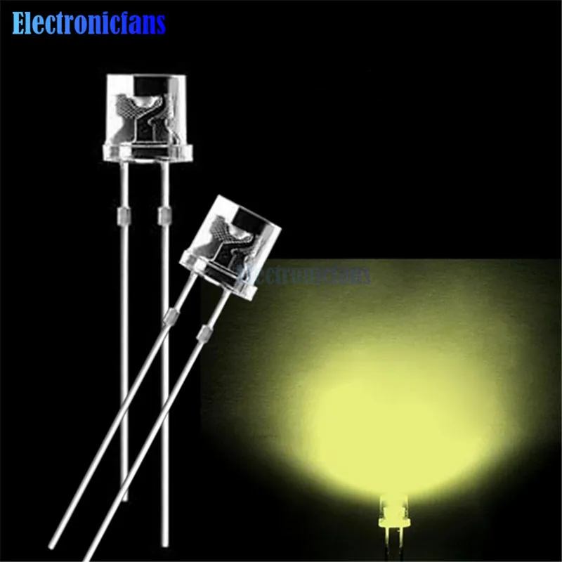 50 шт. 5 мм 2 контакта Плоская верхняя желтая светодиодная широкоугольная плоская лампа