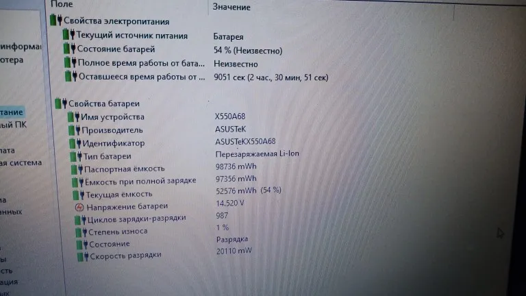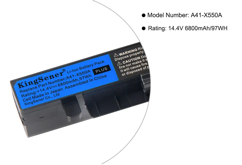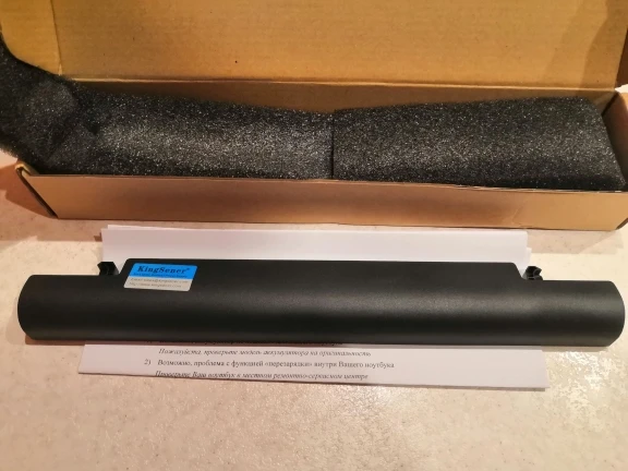 Ноут Asus X550A. Заказала 10.02, получила 15.02 курьером. Брала больше емкостью- родной на 2950 мА/ч. Все подошло. Заряд на 44%. Порадовала инструкция на русском языке) на аккумуляторе есть выступающая часть и теперь ноут стоит под наклоном, что добавляет удобства в работе. Спасибо продавцу!)