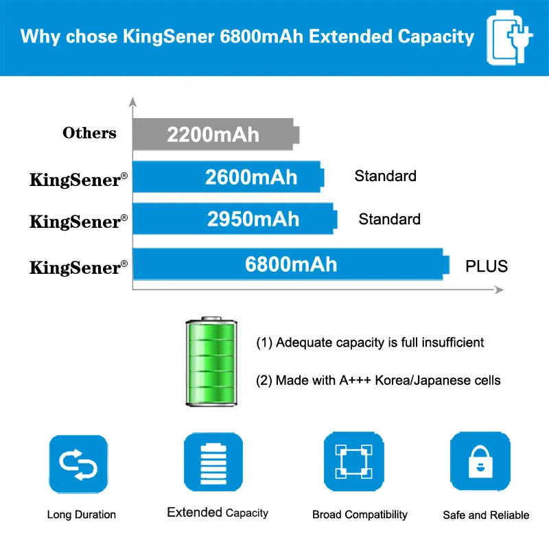 Заказал 6 800 мАч со склада в России, через день доставил курьер, всё подошло. Инструкция на русском, всё понятным языком. Работает. АКБ такой ёмкости больше стандартной батарейки, получается выступ.