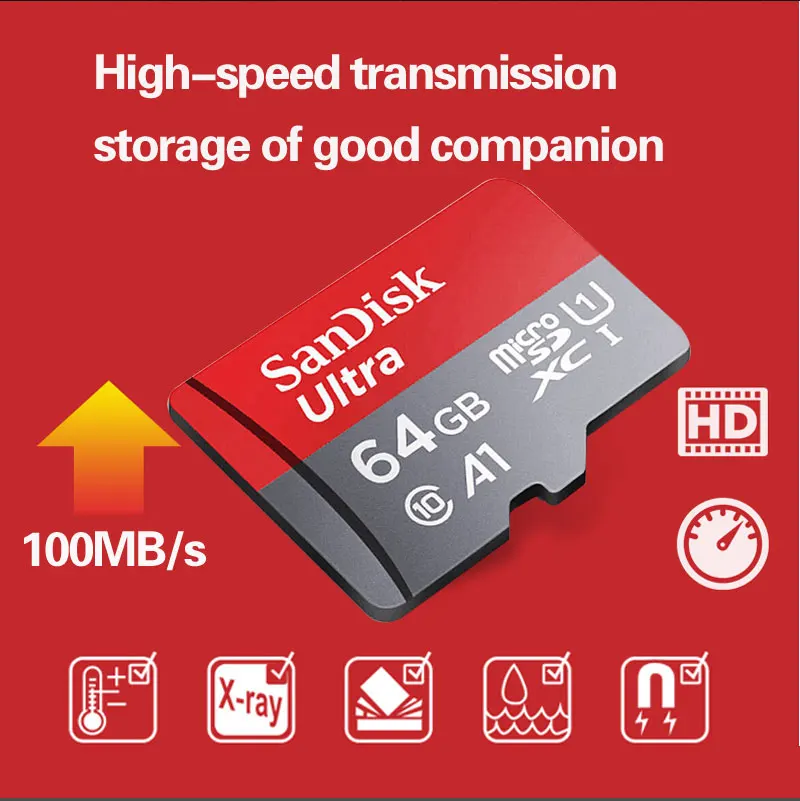 Двойной Флеш-накопитель SanDisk Ultra 64 Гб/128 ГБ MicroSDXC, Class10,A1, максимальная скорость чтения до 100 МБ/с.;