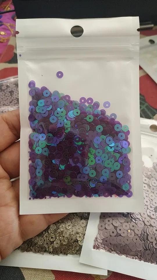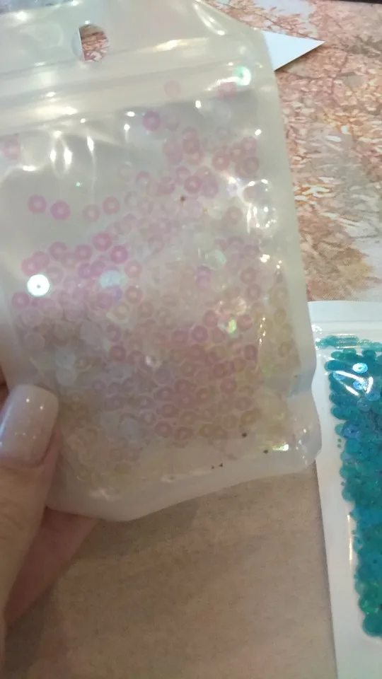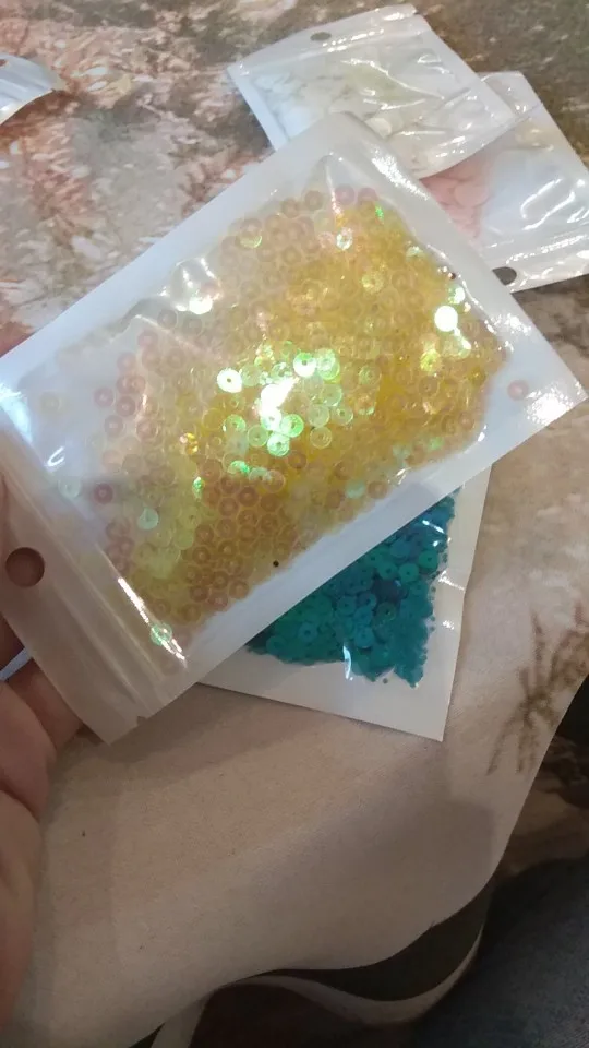 Пайетки прибыли, товар понравился, качественный, покрытие не сцарапывается я попробовала поскоблить , яркого цвета переливаются от фиолетового до изумрудного, продавец отправил вместе с другими заказами, спасибо за подарочек с добрым пожеланием