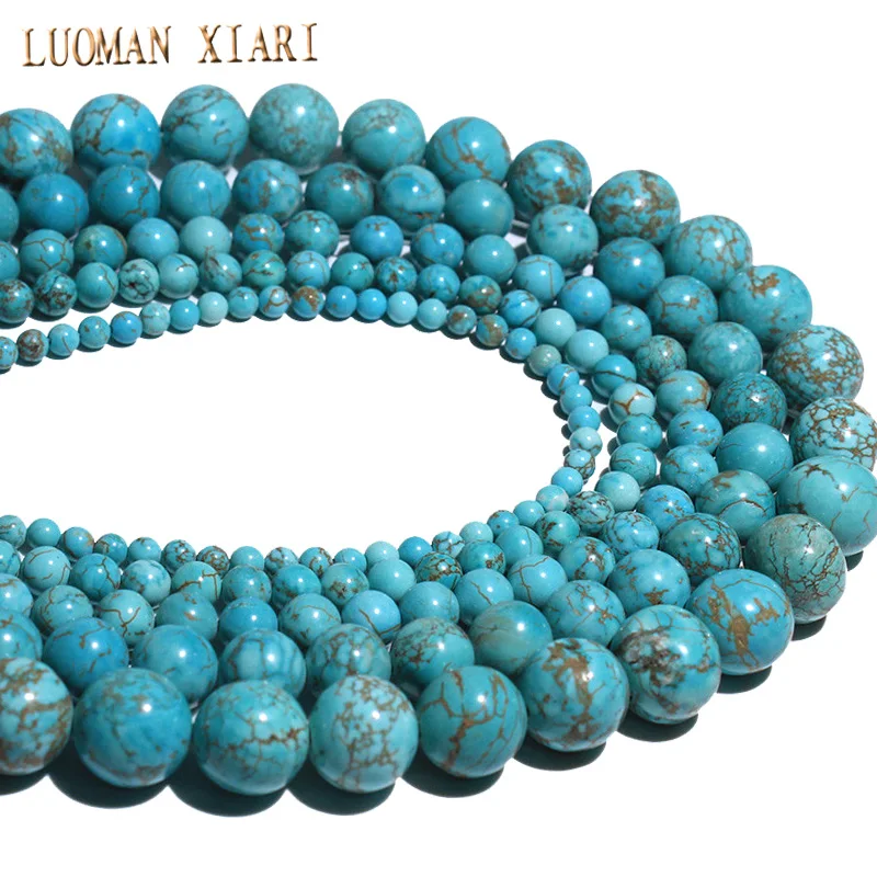 Круглые бусины из голубой бирюзовый натурального камня, для изготовления ювелирных изделий, 4-12 мм, нитка 15,5 дюйма