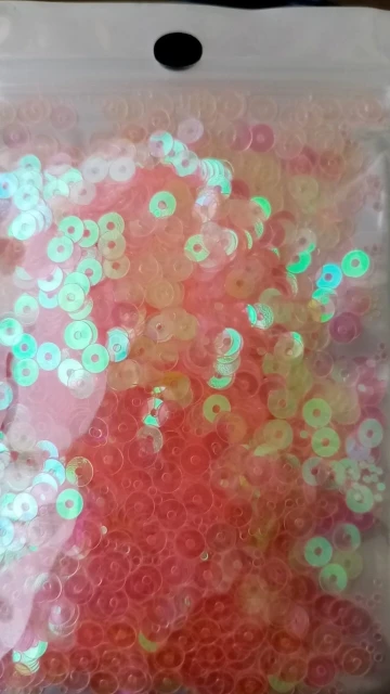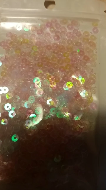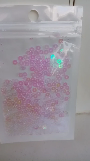 К продавцу претензий нет, все оперативно, но цвет пайеток значительно ярче, чем на фото. Третье фото сделано на балконе, а четвёртое под настольной лампой. Заметьте, это самые светлые пайетки. Нежно розовые. Первые два фото, это просто розовые прозрачные.