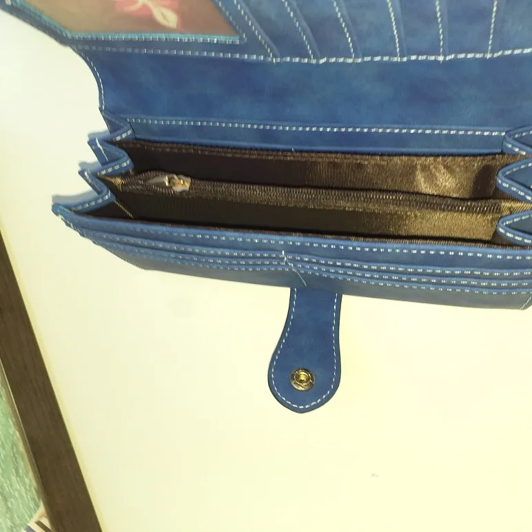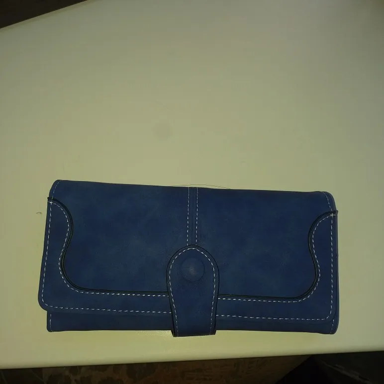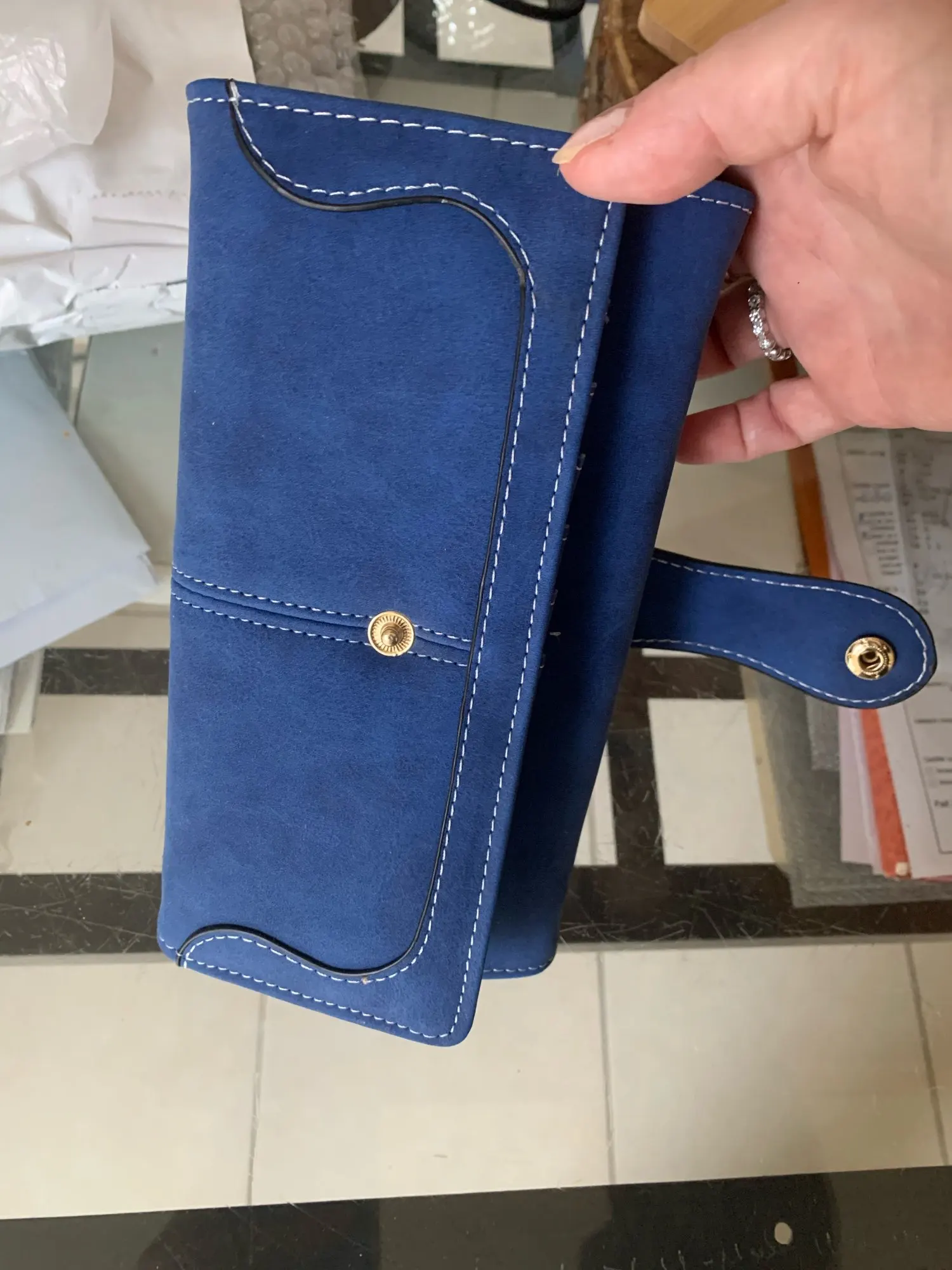 Доставка в течение 15 дней, кошелек идеально соответствует описанию продавца. Синий, как на картинке.