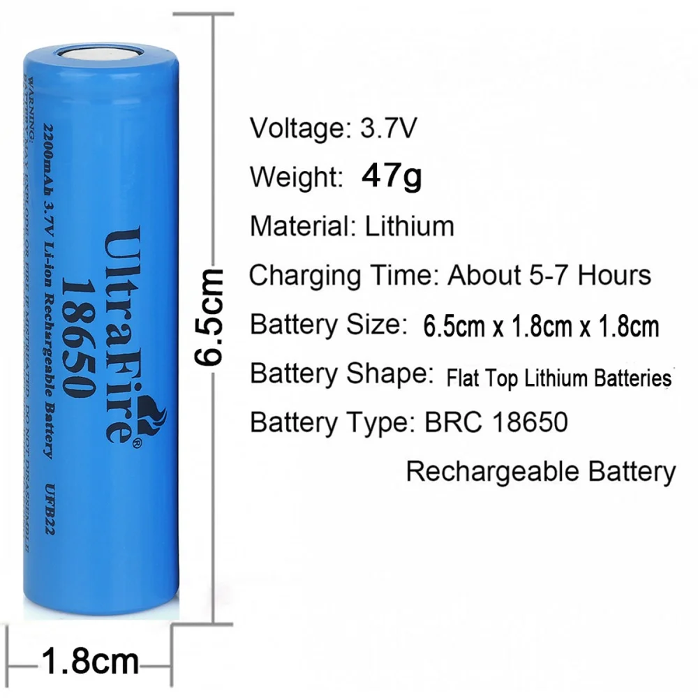 Оригинальный аккумулятор UltraFire 100% 18650 2200 мА ч 3,7 в, высококачественный литий-ионный аккумулятор BRC18650 для электронной сигареты игрушка-фонарик