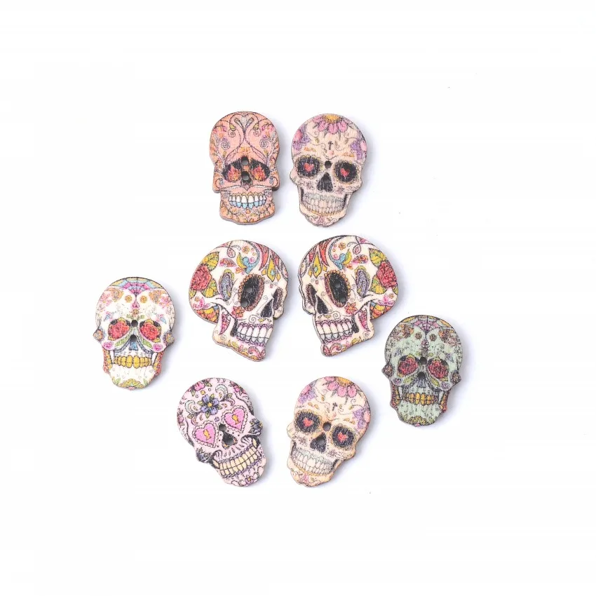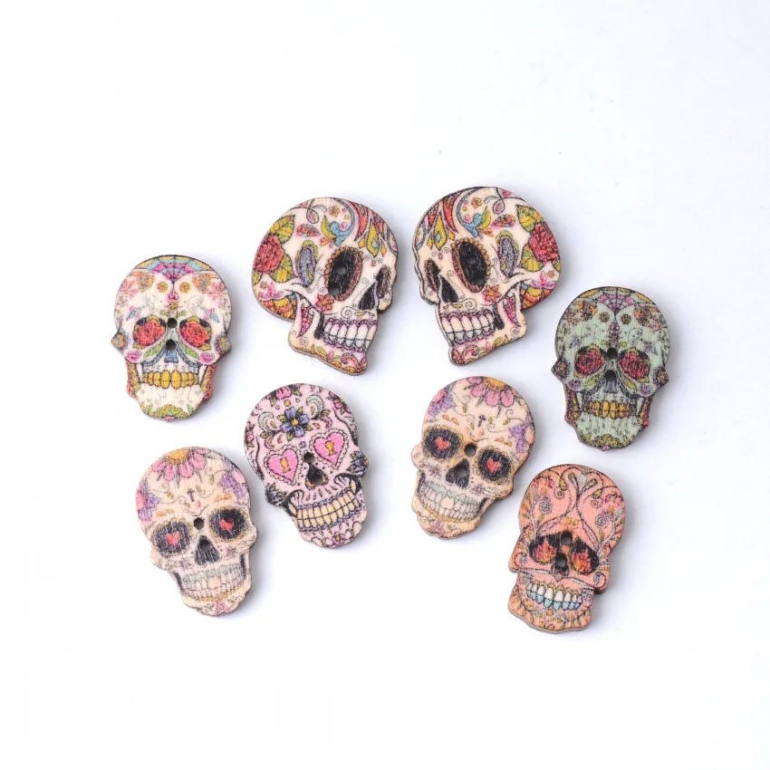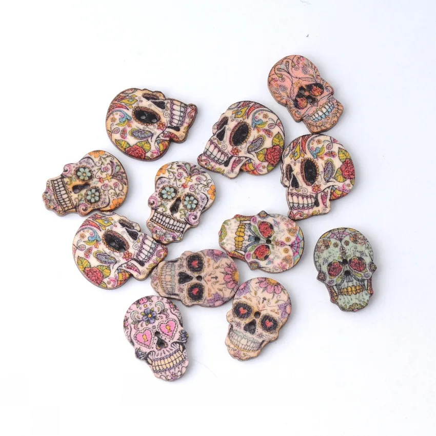 10 шт., деревянные пуговицы с черепом, 25 х21 мм-24 х17 мм