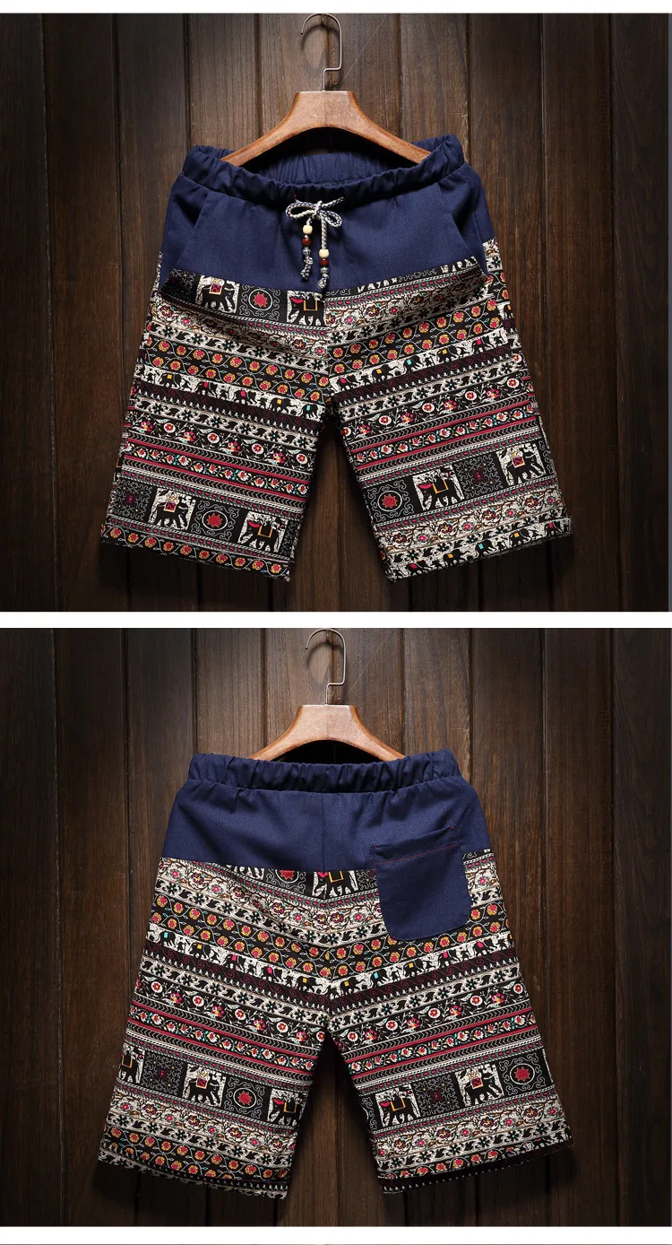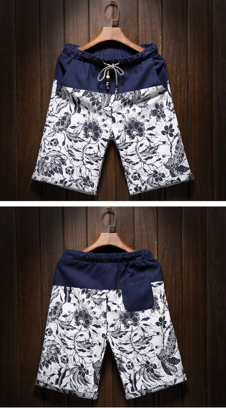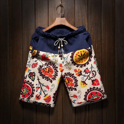 Шорты-бермуды мужские прямые, Гавайские повседневные льняные Короткие штаны свободного покроя, с цветочным принтом, лето 2020