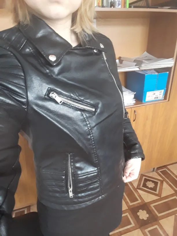 Куртка женская из искусственной кожи, Байкерская, на молнии, с длинным рукавом, черная, осенне-зимняя, 2021