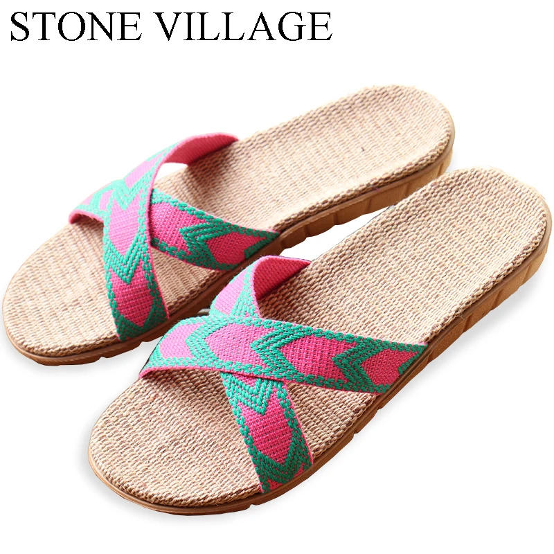 Тапочки мужские STONE VILLAGE, летние домашние шлепанцы лен, Нескользящие, разных цветов