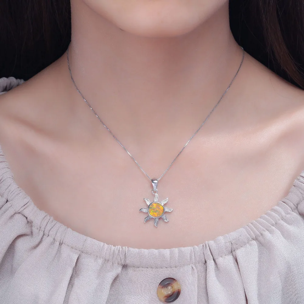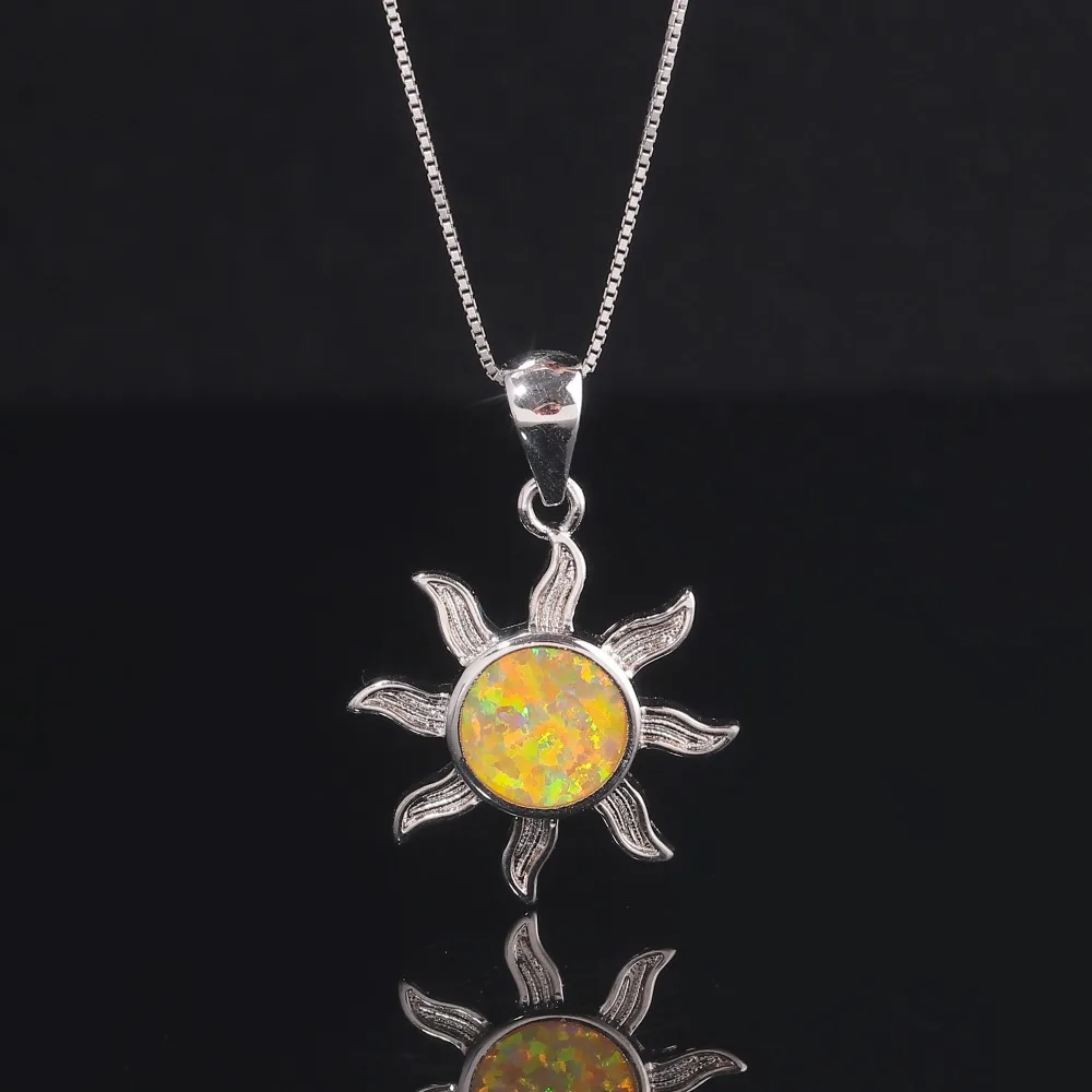 CiNily Роскошные Большие Огненный Опал Подвески в виде солнца посеребренные солнечные звезды Подвески с землей желтый камень простой шик ювелирные изделия для мужчин и женщин